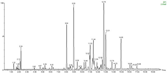 3.5. Liquid Chromatography—Mass Spectrometry Analyses of the Extract (LC/MS)