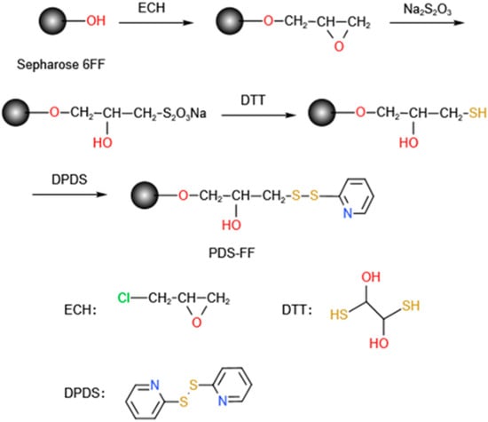 - Ferraz, N.; Leverrier, J.; Batista-Viera, F.; Manta, C. Thiopropyl-Agarose as a Solid Phase Reducing Agent for Chemical Modification of IgG and F(ab’)2. Biotechnol. Prog. 2008, 24, 1154–1159. [Google Scholar] [CrossRef]