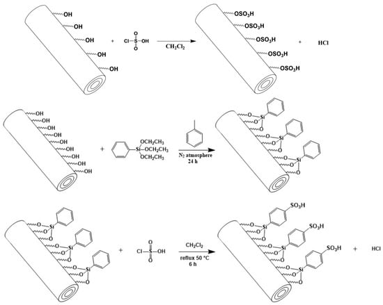 - Silva, S.M.; Peixoto, A.F.; Freire, C. HSO3-functionalized halloysite nanotubes: New acid catalysts for esterification of free fatty acid mixture as hybrid feedstock model for biodiesel production. Appl. Catal. A 2018, 568, 221–230. [Google Scholar] [CrossRef]