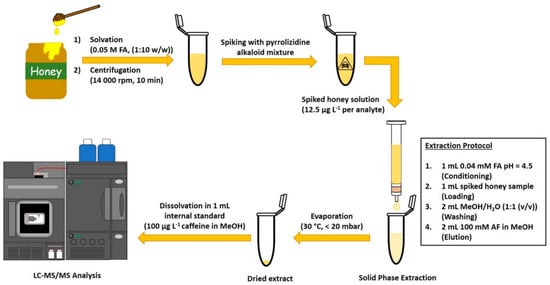 - Schlappack, T.; Weidacher, N.; Huck, C.W.; Bonn, G.K.; Rainer, M. Effective solid phase extraction of toxic pyrrolizidine alkaloids from honey with reusable organosilyl-sulfonated halloysite nanotubes. Separations 2022, 9, 270. [Google Scholar] [CrossRef]