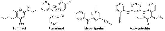 - Hao, S.L.; Cai, Z.F.; Cao, Y.Y.; Du, X.H. Design, synthesis and fungicidal activity of strobilurins containing pyrimidine thioether units. Chin. J. Pest. Sci. 2021, 23, 60. [Google Scholar] [CrossRef]