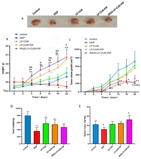Chicago/Turabian StyleWang, Yingzheng, Xunhua Huang, Hanzhi Chen, Qianyuan Wu, Qianqian Zhao, Dezhuang Fu, Qinghua Liu, and Yinghao Wang. 2023. "The Antitumour Activity of a Curcumin and Piperine Loaded iRGD-Modified Liposome: In Vitro and In Vivo Evaluation" Molecules 28, no. 18: 6532. https://doi.org/10.3390/molecules28186532