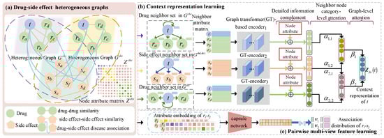 The side-effects of drugs are defined as effects occurring in the body when the drug is administered at therapeutic doses that are unrelated to its therapeutic purpose, including adverse reactions that may cause the drug to fail in clinical trials [1,2,3]. Therefore, providing precise and efficient identification of drug-related side-effect candidates can aid in lowering drug development costs and enhance drug safety [4,5]. Computational methods have demonstrated their ability to aid in drug discovery [6] and design [7] (CADD). They can also screen for reliable drug-related side-effect candidates [8,9,10].
