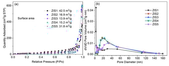 (a) Nitrogen adsorption-desorption isotherms and (b) pore-size distribution of ZIS samples.
