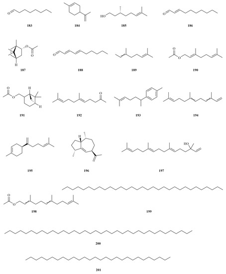 | 68 | (6E)-7-Methyl-3-methylene-6-octene-1,2,8-triol | C10H18O3 | 186.1256 | fruits | IR, HR-MS, 13C-NMR, 1H-NMR, DEPT, HMBC, [HMQC, NOESY | [25] |