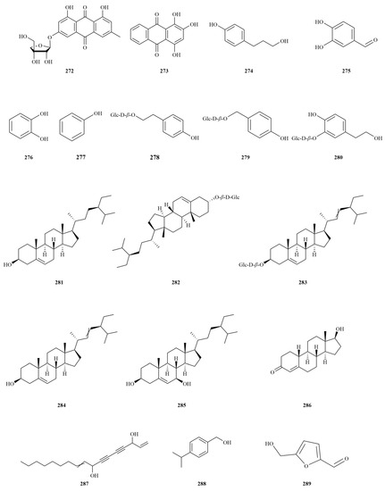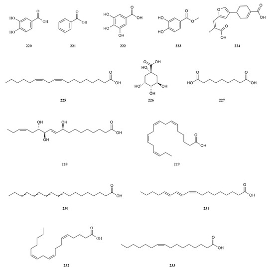 - Kim, S.Y.; Lee, D.Y.; Seo, K.H.; Rho, Y.D.; Kim, G.W.; Baek, N.I. Isolation and identification of lipids from the fruits of Acanthopanax sessiliflorus. J. Appl. Biol. Chem. 2012, 55, 103–107. [Google Scholar] [CrossRef]
