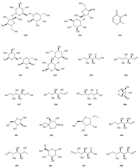 | 69 | Kenposide A | C21H36O10 | 448.2308 | fruits | IR, HR-MS, 13C-NMR, 1H-NMR, DEPT, HMBC, HMQC, NOESY | [25] |