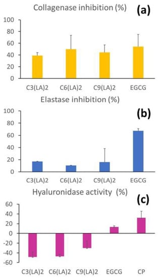 - Thring, T.S.; Hili, P.; Naughton, D.P. Anti-collagenase, anti-elastase and anti-oxidant activities of extracts from 21 plants. BMC Complement. Altern. Med. 2009, 4, 9–27. [Google Scholar] [CrossRef]