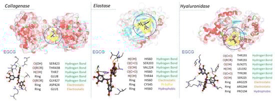 | EGCG | −10.9 | O(OH) | SER423 | Hydrogen Bond | 2.78691 | |