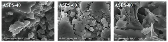 SEM images of ASPS−40, ASPS−60, and ASPS−80 (5000×).