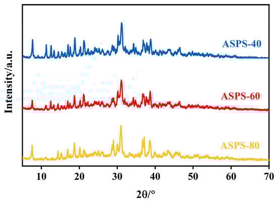 X-ray diffraction (XRD) is a significant technique utilized for the characterization of polymer crystal structures, enabling deeper analysis of polysaccharide structures [36]. In general, crystalline materials appear as sharp narrow diffraction peaks, whereas amorphous components appear as broad peaks [37]. The X-ray diffraction (XRD) results of the ASPSs are shown in Figure 8. This indicates that the overall crystallinity of ASPSs is low and there are no obvious peaks. These results suggest that the internal structure of ASPSs is amorphous and that ethanol−graded precipitation affected the structure of ASPSs.