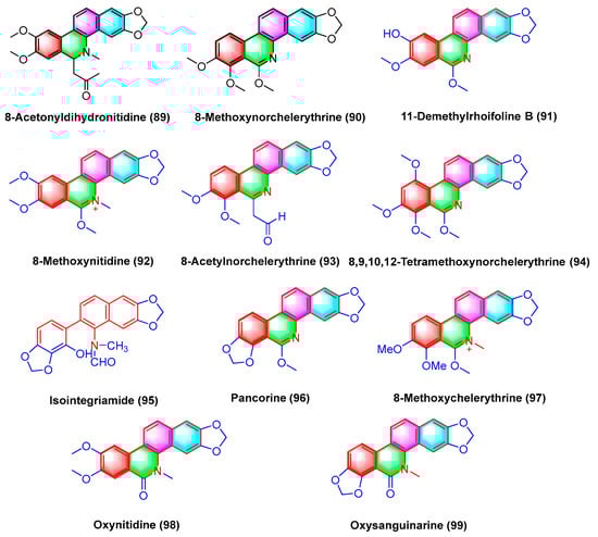 Indeed, benzophenanthridine alkaloids play an anticancer role via different mechanisms. Benzophenanthridine alkaloids are capable of affecting the activity of DNA topoisomerase I and topoisomerase II, suppressing the rapid proliferation of tumor cells [5], inducing cancer cells ferroptosis [6], inhibiting the growth of tumor stem cells [7], and so forth. Benzophenanthridine natural products combine with negatively charged membrane surfaces and proteins, and react with sulfhydryl residues of amino acids, thus interfering with collagenase, tubulin assembly, Na+/K+ATP ase, as well as other functions [8]. The antitumor activities of benzophenanthridine alkaloids are reviewed to lay a theoretical basis for the development of novel antitumor drugs with natural benzophenanthridine alkaloids as the lead compounds.