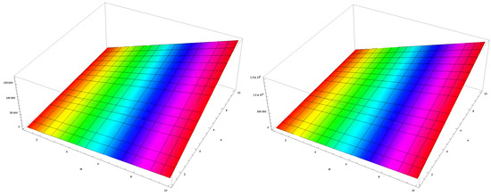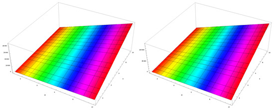 In this section, we unveil a captivating array of numerical findings, delving into the profound realm of distance-degree-based topological indices applied to both -graphyne nanoribbon and zigzag -graphyne nanoribbon. The graphical representation of the leap Zagreb indices is shown in Figure 5, the hyper leap Zagreb indices are shown in Figure 6, the leap gourava indices are shown in Figure 7, and the hyper leap gourava indices are shown in Figure 8 for -graphyne nanoribbon.