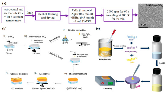 - Shadabroo, M.S.; Abdizadeh, H.; Golobostanfard, M.R. Dimethyl sulfoxide vapor-assisted Cs2AgBiBr6 homogenous film deposition for solar cell application. ACS Appl. Energy Mater 2021, 4, 6797–6805. [Google Scholar] [CrossRef]