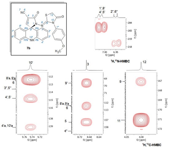 Key 1H,13C-HMBC and 1H,15N-HMBC correlations for derivative 7b.