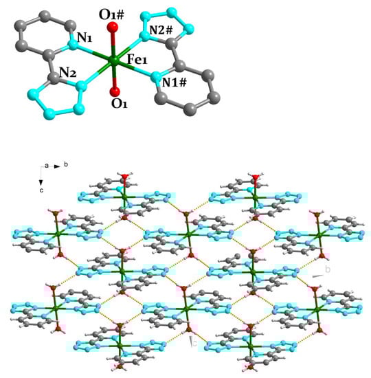 3.2. Synthesis of [Fe{2-(1H-tetrazol-5-yl)pyridine}2(H2O)2] (1)