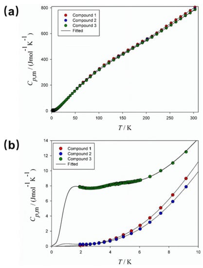 - Luo, J.P.; Zheng, H.; Wang, X.Q.; Yin, N.; Meng, Y.S.; Tan, Z.C.; Shi, Q. Low temperature heat capacity, thermodynamic and magnetic property of several new dinuclear complexes. J. Chem. Thermodyn. 2022, 170, 106785–106793. [Google Scholar] [CrossRef]