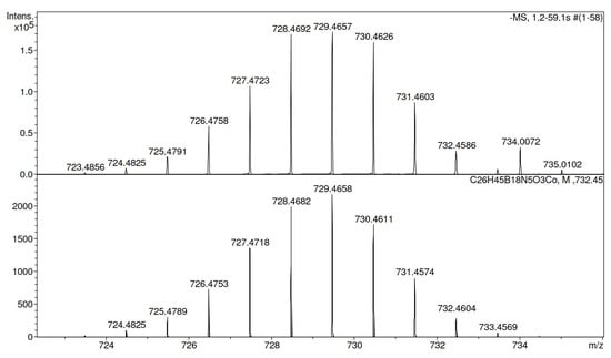 Mass spectrum of conjugate 7 (found 729.4657 [M]−, [C26H45B18CoN5O3]−, calculated 729.4658).