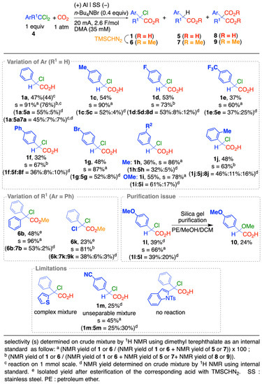 5. Otero, M.D.; Batanero, B.; Barba, F. CO2 anion–radical in organic carboxylations. Tetrahedron Lett. 2006, 47, 2171–2173. [Google Scholar] [CrossRef]