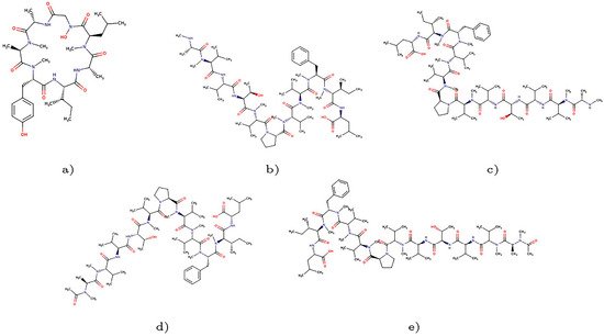In this study, we focused on these peptides obtained from marine sponges hoping to find a new source of therapeutic peptides. We used Conceptual DFT techniques to predict the chemical reactivity of Talarolide A and Talaropeptides A–D, whose starting molecular structures are shown in Figure 1, involving the determination of local and global properties. This allowed us to predict and understand active reaction sites, both nucleophilic and electrophilic. The study also includes predicting the biological targets using various methods in the literature [9]. The starting molecular structures of the studied peptides were obtained using PubChem (https://pubchem.ncbi.nlm.nih.gov, accessed on 1 March 2023), which serves as a public repository for information related to chemical substances and their biological activities. The methodology used in this study builds upon previously published results on different families of marine-origin therapeutic peptides. By understanding the chemical reactivity of natural products, new medicines can be developed, and molecular modeling and computational chemistry tools like Conceptual DFT aid in predicting how chemical reactions occur, which is crucial for drug discovery [20].