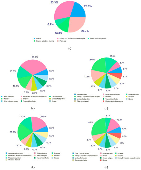 Graphical Representation of the Biological Targets for (a) Talarolide A, (b) Talaropeptide A, (c) Talaropeptide B, (d) Talaropeptide C and (e) Talaropeptide D.