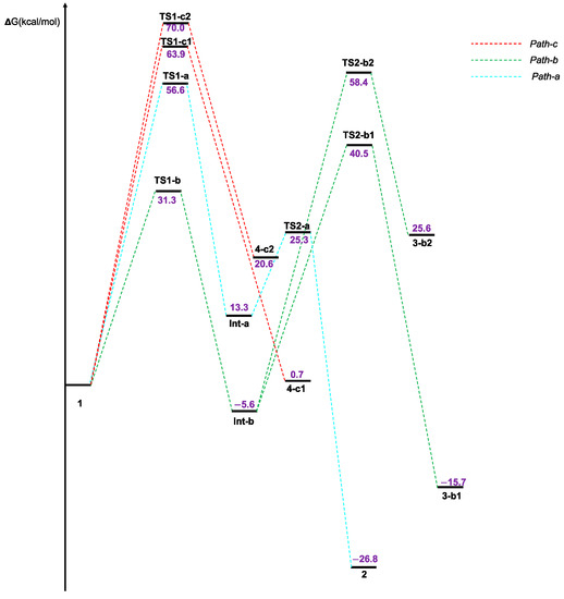 - Gonzalez, C.; Schlegel, H.B. Reaction path following in mass-weighted internal coordinates. J. Phys. Chem. 1990, 94, 5523–5527. [Google Scholar] [CrossRef]
