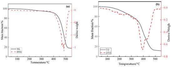 Thermogravimetric curves of ligand O (a) and oil-soluble catalyst Zn(II)O (b).