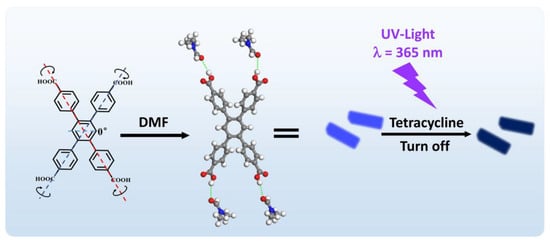 Schematic diagrams of the structure of H4TCPB·4DMF and the fluorescence quenching response toward tetracycline (TC).