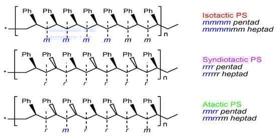 - Laur, E.; Kirillov, E.; Carpentier, J.F. Engineering of Syndiotactic and Isotactic Polystyrene-Based Copolymers via Stereoselective Catalytic Polymerization. Molecules 2017, 22, 594–625. [Google Scholar] [CrossRef] [PubMed]