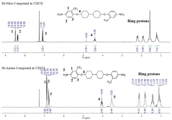 3.4. Preparation of 1,1′-[[1,1′-bicyclohexyl]-4,4′-diylbis(oxy)]bis[4-nitro-2-(trifluoromethyl)benzene]