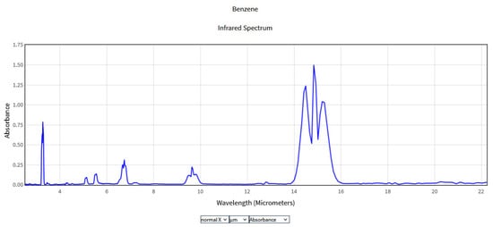 - Benzene. Available online: https://webbook.nist.gov/cgi/cbook.cgi?ID=C71432&Units=SI&Type=IR-SPEC&Index=0#IR-SPEC (accessed on 11 August 2023).