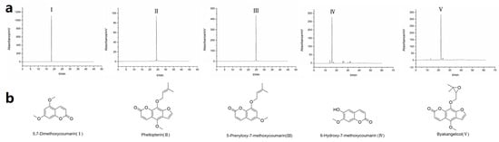 Chicago/Turabian StyleWang, Chaoyue, Jiangang Huang, Zhiling Zhou, Ping Xu, Jingyi Shi, Yushun Yang, Shengqiang Tong, and Hongyu Hu. 2023. "Coumarins from Jinhua Finger Citron: Separation by Liquid–Liquid Chromatography and Potential Antitumor Activity" Molecules 28, no. 19: 6917. https://doi.org/10.3390/molecules28196917