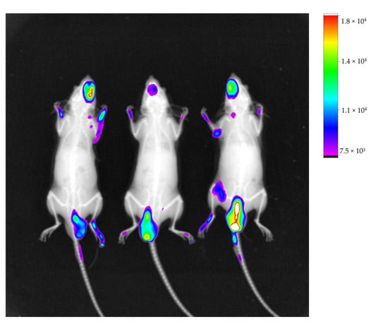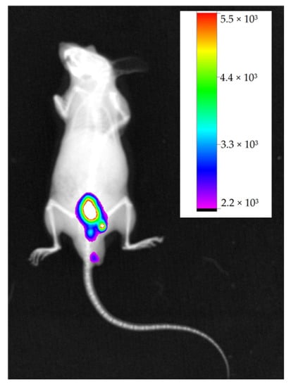 Histological analyses were also performed on organs that showed higher fluorescence to determine if there was any cellular implantation. However, intact tissue without signs of abnormal cell growth or inflammatory and necrotic processes was observed. Thus, it can be stated that there was no metastasis to other organs (images not presented).