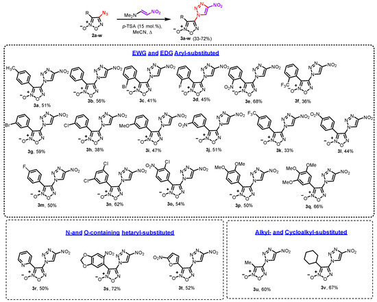 4.3.2. General Procedure for the Synthesis of 4-(4-Nitro-1H-1,2,3-triazol-1-yl)furoxans 3a–v