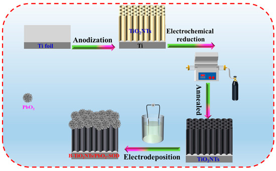 The preparation procedure of the Ti/B-TiO2-NTs/PbO2-SDS electrode.