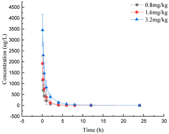| Dosage (mg/kg) | AUC0–t (h·μg/L) | AUC0–∞ (h·μg/L) | Cmax (μg/L) | CL (L/h/kg) | T1/2 (h) | Vd (L/kg) |