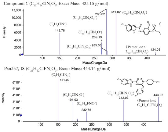 2.4. The Distribution of Compound 1 in Brain Tissue
