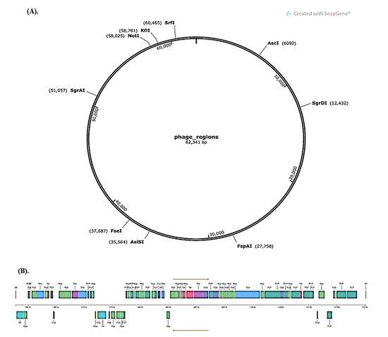 Two significant phage hits were discovered by PHASTER that will increase the genetic variety and provide access to genomic variation as bacteria evolve. The two significant hits were against previously identified phage sections of viruses and other bacterial species (Table S2).