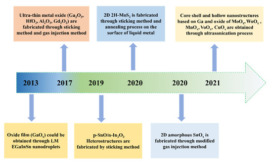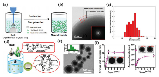 - Kalantar-Zadeh, K.; Tang, J.; Daeneke, T.; O’Mullane, A.P.; Stewart, L.A.; Liu, J.; Majidi, C.; Ruoff, R.S.; Weiss, P.S.; Dickey, M.D. Emergence of Liquid Metals in Nanotechnology. ACS Nano. 2019, 13, 7388–7395. [Google Scholar] [CrossRef]