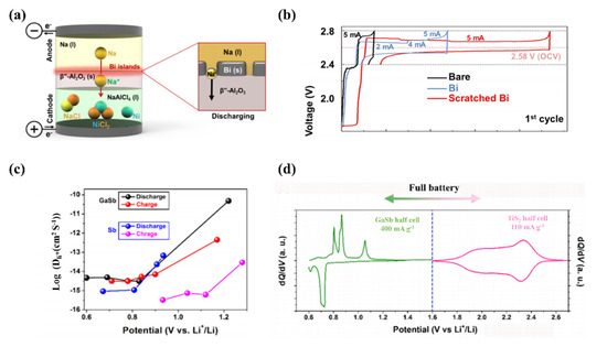 - Jin, D.; Choi, S.; Jang, W.; Soon, A.; Kim, J.; Moon, H.; Lee, W.; Lee, Y.; Son, S.; Park, Y.C.; et al. Bismuth Islands for Low-Temperature Sodium-Beta Alumina Batteries. ACS Appl. Mater. Interfaces 2019, 11, 2917–2924. [Google Scholar] [CrossRef]