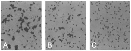 The number of the invaded cells stained with hematoxylin-eosin on the underside of the filter coated with Matrigel is reduced in the presence of green tea infusion in the cell incubation medium compared to its absence. (A), Invaded cells without green tea infusion; (B), Invaded cells with green tea infusion; (C), Chemotaxicell chamber without the added cells. Reproduced from [43]. Reprinted with permission from Ref. [43]. Copyright 1995 Elsevier.