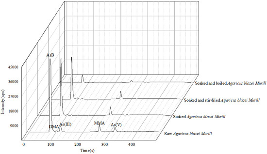 - Zou, H.; Zhou, C.; Li, Y.; Yang, X.; Wen, J.; Song, S.; Li, C.; Sun, C. Speciation analysis of as in edible mushrooms by high-performance liquid chromatography hyphenated to inductively coupled plasma mass spectrometry. Food Chem. 2020, 327, 127033. [Google Scholar] [CrossRef]