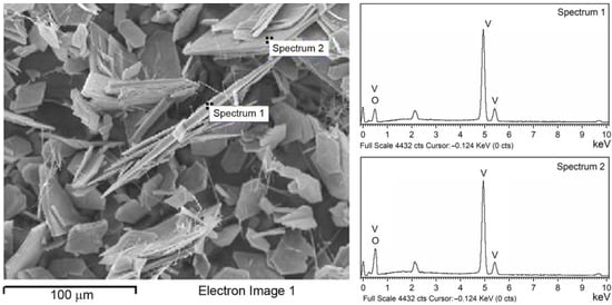 SEM image (left) with corresponding EDS spectra (right) of V2O5 catalyst.