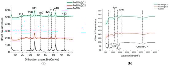 3.3. Synthesis of the Supported Catalysts Fe3O4@C1 and Fe3O4@C2