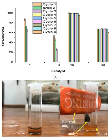 Recyclability of Pre-Catalysts C1, C2, Fe3O4@C1 and Fe3O4@C2