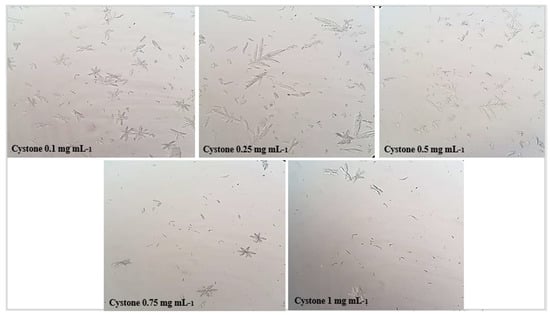 Figure 4. Microscopic observation of struvite crystals at different concentrations of cystone.