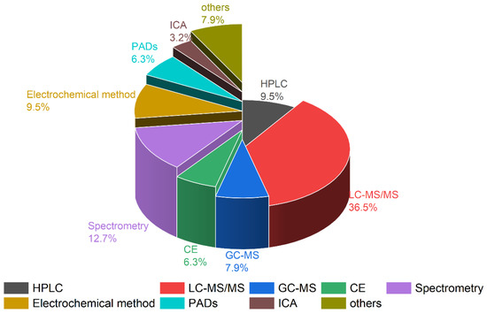 | Urine | Capcell Pak ST column (Shiseido Co., Ltd., Japan; 150 mm × 2.0 mm, 2.6 μm) | A: 0.4%TFA in water B: acetonitrile Flow rate: 0.30 mL/min Isocratic elution | PQ: 0.94 ng/mL | PQ: 2.82 ng/mL | [34] |