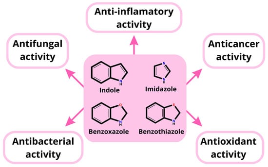 Another important class of nitrogen-containing heterocycles is imidazoles. The imidazole ring system is found in the amino acid histidine, hormone histamine, and purine [21]. Imidazole derivatives have antibacterial, anticancer, antitubercular, antifungal, and analgesic properties [22,23].