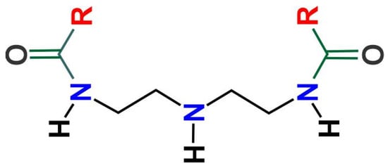 Figure 6), it is possible that its adsorption to the metal surface was carried out from the N-rich group (diaminodiethylamine group) to the unsaturations present in the hydrocarbon chains [