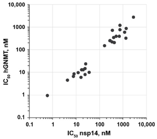 5-(((Adenosyl)thio)methyl)-4′-hydroxy-[1,1′-biphenyl]-3-carboxylic acid (5t): Synthesized following general procedure P4 from 4t (80 mg, 0.14 mmol), yielded 32 mg, 44%. HPLC purity 91%. See the following: 1H NMR (400 MHz, DMSO-d6) 13.00 (br s, 1H), 9.64 (s, 1H), 8.33 (s, 1H), 8.11 (s, 1H), 7.96 (t, J = 1.6 Hz, 1H), 7.80 (d, J = 1.6 Hz, 1H), 7.72 (t, J = 1.6 Hz, 1H), 7.52–7.46 (m, 2H), 7.26 (br s, 2H), 6.90–6.82 (m, 2H), 5.88 (d, J = 5.7 Hz, 1H), 5.49 (d, J = 5.4 Hz, 1H), 5.32 (br s, 1H), 4.73 (q, J = 5.1 Hz, 1H), 4.16 (t, J = 4.4 Hz, 1H), 4.03 (td, J = 6.4, 3.8 Hz, 1H), 3.87 (s, 2H), 2.88 (dd, J = 13.8, 6.0 Hz, 1H), and 2.75 (dd, J = 13.8, 6.8 Hz, 1H); 13C NMR (100 MHz, DMSO-d6) 167.3, 157.6, 156.1, 152.7, 149.5, 140.6, 140.0, 139.8, 131.7, 130.8, 129.8, 127.9, 127.7, 125.2, 119.2, 115.9, 87.6, 83.5, 72.6 (2C), 35.4, and 33.6. HRMS (ESI/TOF-Q) m/z: [M + H]+ calcd. for C24H24N5O6S, 510.1442; found, 510.1443.